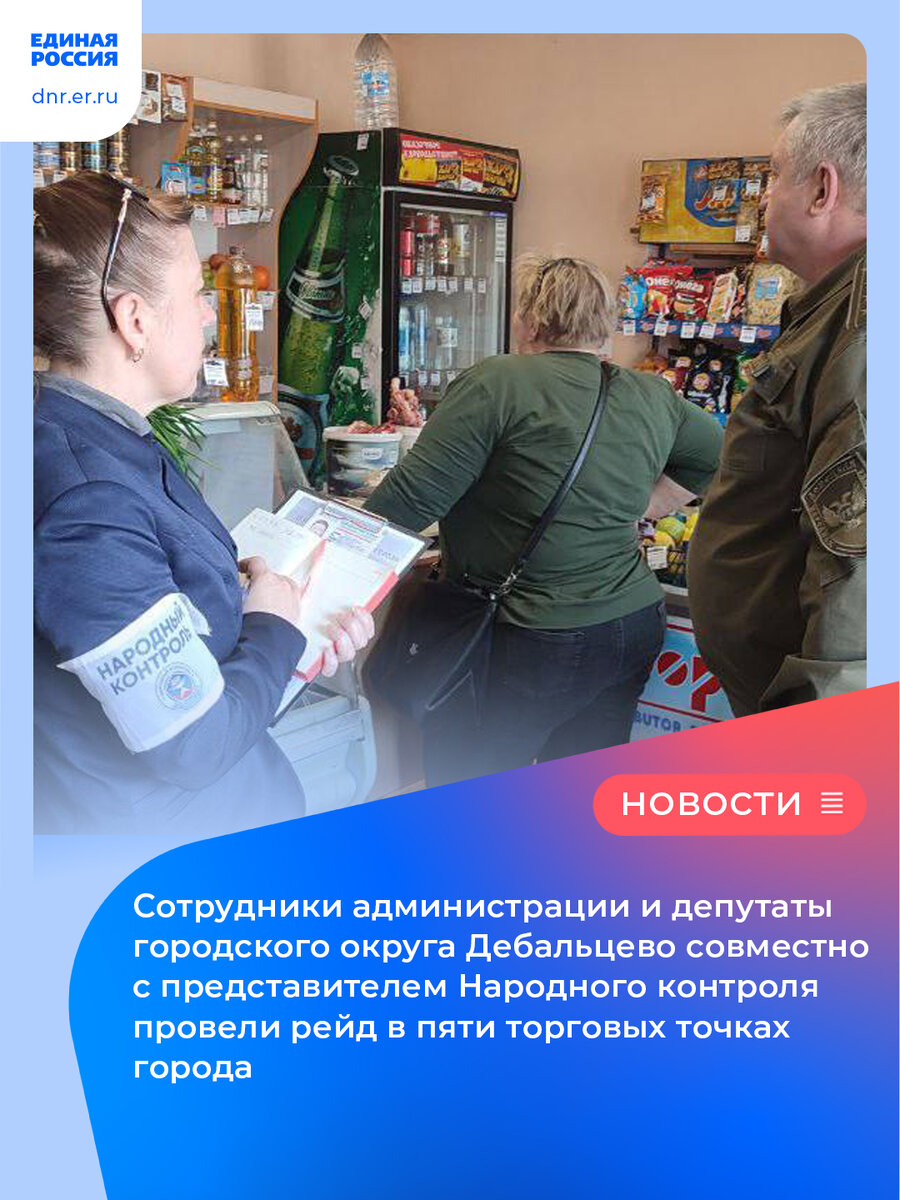 По поручению Главы ДНР Дениса Пушилина мониторинг цен на социально значимые товары продолжается. Сотрудники администрации и депутаты городского округа Дебальцево совместно с представителем Народного контроля провели рейд в пяти торговых точках города. В ходе мониторинга установлено, что цены на большинство товаров соответствуют условиям меморандумов. Однако замечено превышение розничной цены на хлебобулочные изделия и молочную продукцию на 5-12 % средней по Ростовской области. По итогам рейда с предпринимателями была проведена беседа о соблюдении законодательства РФ в сфере ценообразования, правил торговли и Закона «О защите прав потребителей». #ЕРДНР #НародныйКонтроль #ЕдинаяРоссия