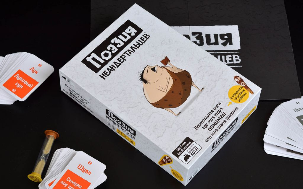 Иногда хочется простого неандертальского “тумба-юмба”, а не вот это вот всё. Взять бы копьё, да отправиться на поиски мамонтов. Жаль, что мамонты сейчас остались только в интернете. А вот немного побыть первобытным человеком попробовать можно. Начнём с коммуникации. Как известно, первобытные люди не обладали избытком слов в лексиконе. А зачем им нужно было много? “Костёр греть, мамонт вкусно, тигр бояться” – парой слов можно описать всю первобытную жизнь. Но зарождающийся разум ощущал потребность в творчестве, кто-то вырисовывал силуэты животных на стенах пещер, кто-то до блеска затачивал копья и другие орудия труда, а наша задача – наладить коммуникацию с другими племенами, рассказав им собственную историю. Помните, что первобытный народ очень вспыльчивый, не то слово или лишний слог – “дубинка голова бить”. Игрокам предстоит объяснять ситуации, изображённые на карточках, с помощью односложных слов. Если игрок решит проявить слишком много образованности и использовать слово из двух с