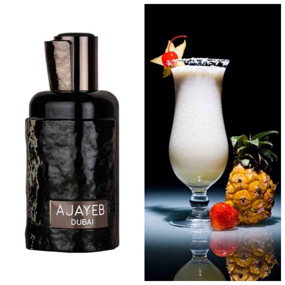 Пролог: мы с девочками зашли кофе попить, но в заведении оказалась коктейльная карта, дальше «как в тумане». Ajayeb Dubai новинка 2023 года от доступного арабского бренда Lattafa Perfumes. Ребята делают много и годно, где-то своё, где-то вдохновляются другими, но ценник посильный, качество тоже все лучше и лучше. Если честно, этот аромат мне порекомендовали девочки у меня в телеграмм канале, а так как я не успеваю за всеми релизами арабской парфюмерии, то с радостью беру на карандаш, что советуют. Я купила семпл на 1,5 мл на сайте интернет магазина Randewoo. Цена пробника 136₽, флакон в 100 мл - 3782₽, сэкономить можно, применив промокод 10PS ( работает всегда для всех желающих при покупке от 2500₽) и получить дополнительную скидку в 10 процентов. У меня всегда общий заказ, поэтому скидка проходит и на пробники. И по пирамиде тут интересная история намечается. С одной стороны кофе, с другой, ананас и шафран. И на мне он стартанул шиворот на выворот. И отношение к нему сумбурное.