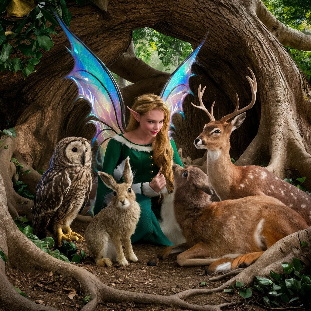 В древние времена, когда луна светила ярче звезд, в таинственном лесу, который окутывал туманами свои глубины, нашла свое убежище Аурелия — необычный эльф. Она отличалась своими крыльями, которые переливались всеми цветами радуги. Но крылья не служили для полета, а были даром слушать и понимать шорох листьев, шелест трав и пение ветров. Аурелия знала все тайны леса, и животные считали ее своей повелительницей и надежным другом. Рядом с ее домом, спрятанным меж корнями древнего дерева, каждое утро собирался совет мудрецов — сов, зайцев и даже благородных оленей, чтобы обсудить новости. Однажды лес охватил тревожный шепот. В его сердце пришло нечто непонятное и тревожное. Старейшины рассказали Аурелии, что там зарождается таинственная тьма, поглощающая все живое. Девочка, невзирая на опасности, решила выяснить причину бедствия. Путешествие было полно испытаний: иногда она спасала потерянных зверят, иногда помогала растениям — ей надлежало выслушать каждое дыхание природы. Наконец, она до