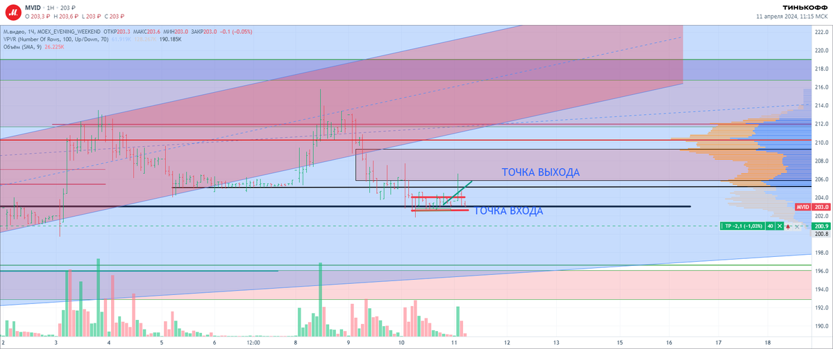 Уровень 196 руб тоже слабый, т.к. на нем не было объемов. В связи с этим принимаю решение постоять в сторонке, поискать сделки в зоне покупок на подходе к 196 руб и ниже под уровнем.
