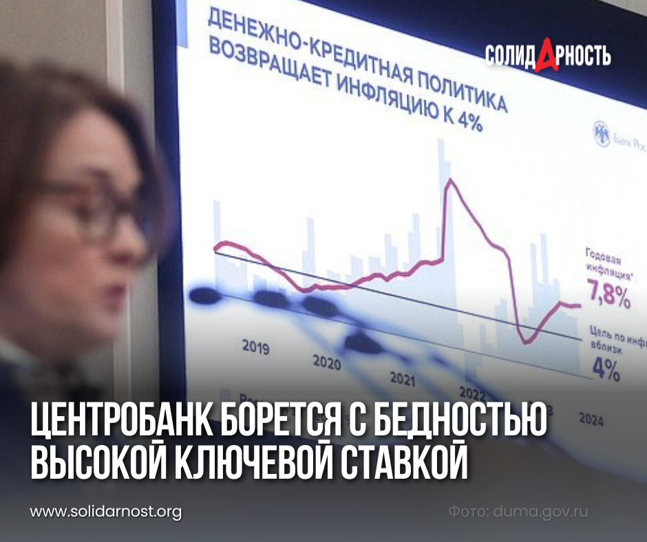 Высокая ключевая ставка Центробанка, по мнению ее главы, вносит вклад в борьбу с бедностью, так как защищает доходы граждан.