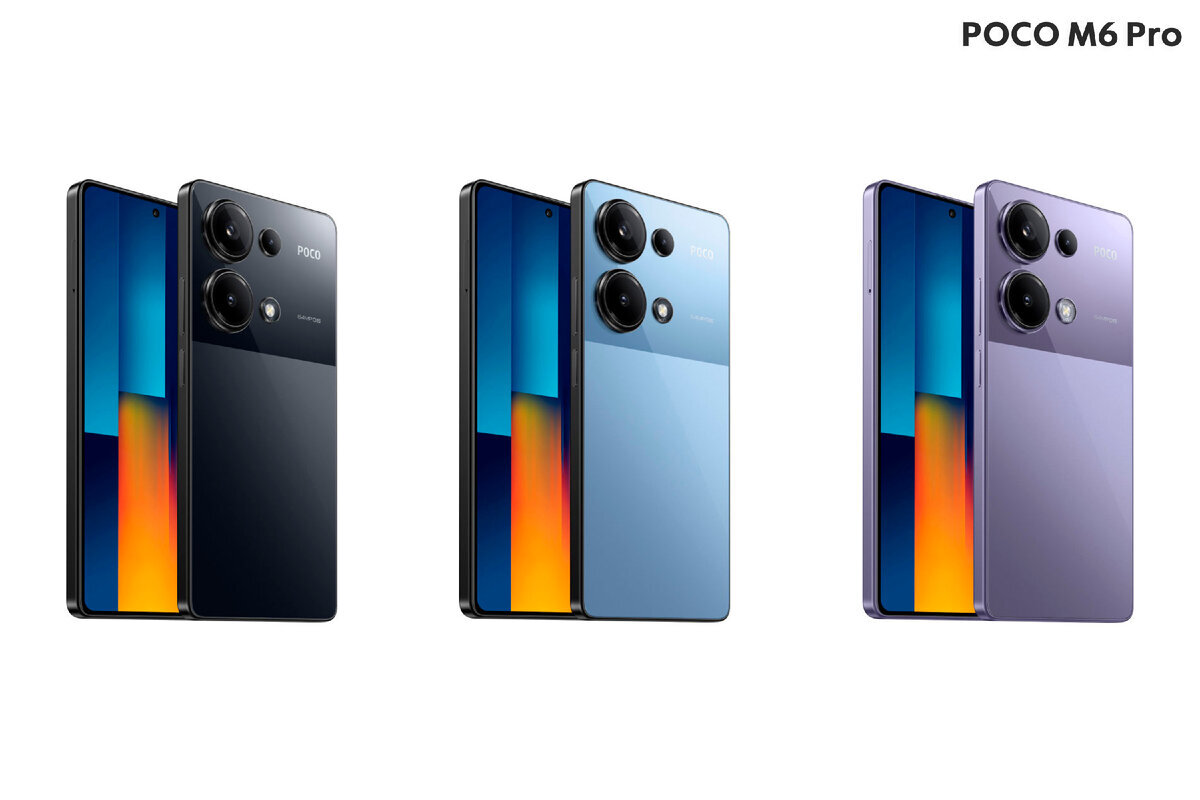Poco M6 Pro был выпущен 1 февраля 2024 года. Он был выпущен в трёх цветах: чёрный, синий, фиолетовый. Дизайном схож с Redmi Note 13 4G и Redmi Note 13 Pro 4G. Смартфоны Poco всегда поставляются после выхода на глобальный рынок, поэтому Poco M6 Pro уже на глобальном рынке. Poco M6 Pro является следующим поколением после Poco M5. Экран: Poco M6 Pro имеет 6,67-дюймовый AMOLED-дисплей с разрешением 1080 x 2400 и с частотой обновления экрана 120 Гц. Яркость экрана 1200 nit — этой яркости хватит даже при солнечной погоде. Характеристики: Камеры: У Poco M6 Pro на задней стороне есть 3 камеры. Фронтальная камера всего на 16 MP. Примерные цены по версиям: 8/256 ГБ — 18000 руб. 12/512 ГБ — 20000 руб.