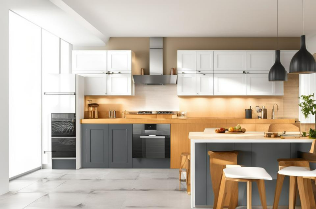 - Планировка кухни: определите расположение мебели, бытовой техники и рабочих зон.