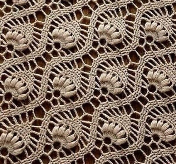Существует множество различных узоров и техник вязания крючком, начиная от базовых петель (воздушные, столбики, двойные столбики и др.) и заканчивая сложными узорами и композициями. Например, этот отличный узор идеально подходит для вязания мягкого многоцветного пледа: Очень красивый нежный узор, когда грамотно подобраны цвета: Воздушный ажурный узор крючком: Узор с цветами В этом узоре важно соблюдать сочетание расцветок пряжи по рядам, так цветы будут чётче виднее. Если связать в одном тоне, то узор может потеряться! Красивый узор для вязания летних изделий, можно также один раппорт использовать в качестве отделки: А это оригинальные и простые в исполнении узоры крючком: Простой плотный узор крючком Этот узор вяжется из одних столбиков без накида. Благодаря своей плотности отлично держит форму. Начало вязания с набора цепочки и