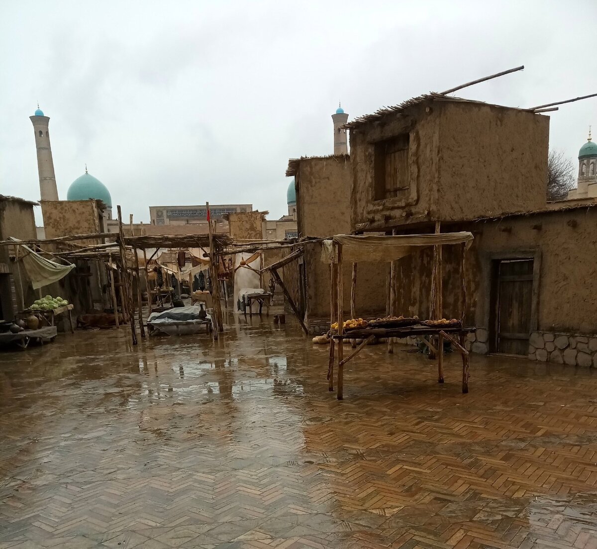 Погода по-прежнему не радует. С утра небо было затянуто тучами. На прогулку собирались с неохотой. В планах на день: Ансамбль Хазрати Имам, Японский сад, несколько городских парков и самостоятельная дегустация вин. До Хазрати-Имам доехали на такси. Вход здесь бесплатный. На территории комплекса снимали какой-то исторический фильм и воссоздали атмосферу старинного восточного базара. Осмотреть успели немного. Начался дождь и, сделав несколько фотографий, мы залипли в сувенирных лавках. Следующим по плану был Японский сад. Его решили посмотреть по рекомендациям других туристов в интернете. Начитались хороших отзывов. Сакуры цветут красиво, но гулять очень холодно. В саду как-то пустовато и скучно. В пруду насчитали 3 карпа)) Писали, что по саду гуляют птицы, в том числе павлины. Видели только гусей и уток в загончиках) За вход берут 50 тыс. сум с человека. Дороговато за маленький парк с гусями. Цены на вход видимо никак не соотносят с сезонами, несмотря на всю разницу в полученных впе