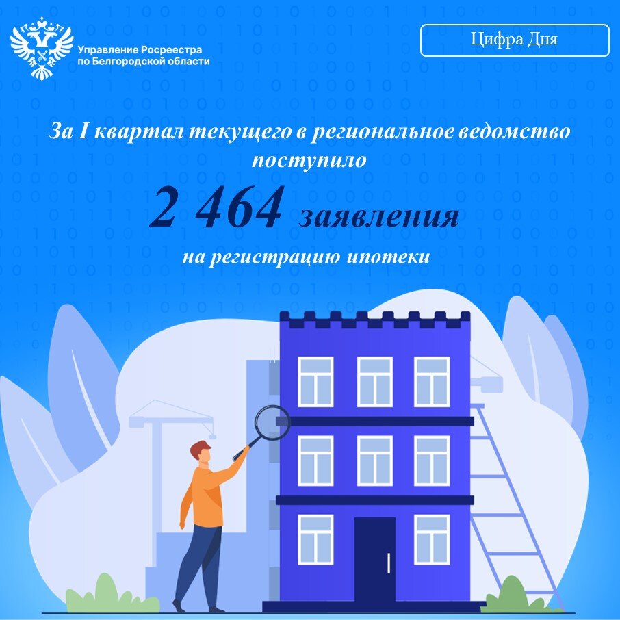 В рамках рубрики #ЦифраДня Управление Росреестра по Белгородской области информирует, что за I квартал текущего года в региональное ведомство поступило 2 464 заявления на регистрацию ипотеки, причем более 70 % из них – в электронном виде.