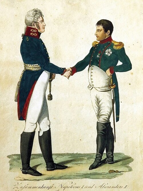 На совещаниях двух императоров в Эрфурте (1809) был затронут и династический вопрос. Наполеон уже год как серьезно помышлял о разводе с Жозефиной, чтобы браком с одним из императорских дворов Европы обеспечить будущность своей династии. Он заранее добивался от Александра I обещания предоставить ему руку одной из великих княжон в том случае, если он решится на развод. Царь повел речь о своей младшей сестре, великой княжне Анне, которой не было еще пятнадцати лет, и намекнул Наполеону на возможность этого брака, однако при условии, что на это согласится императрица-мать Мария Федоровна, так как император Павел Петрович будто бы предоставил ей в духовном завещании право распоряжаться судьбой дочерей. Эту увертку если не придумал, то одобрил Талейран, выбранный Наполеоном в главные посредники в этом деле. "Признаюсь, - вспоминал Талейран, - меня испугала мысль о еще одной связи между Францией и Россией. На мой взгляд, необходимо было настолько одобрить план этого брака, чтобы удовлетворить Наполеона, и в то же время выставить такие оговорки, которые сделали бы его трудно осуществимым". Он добился своего: к политическим недоразумениям между двумя императорами прибавилась еще и личная обида полуотвергнутого жениха.