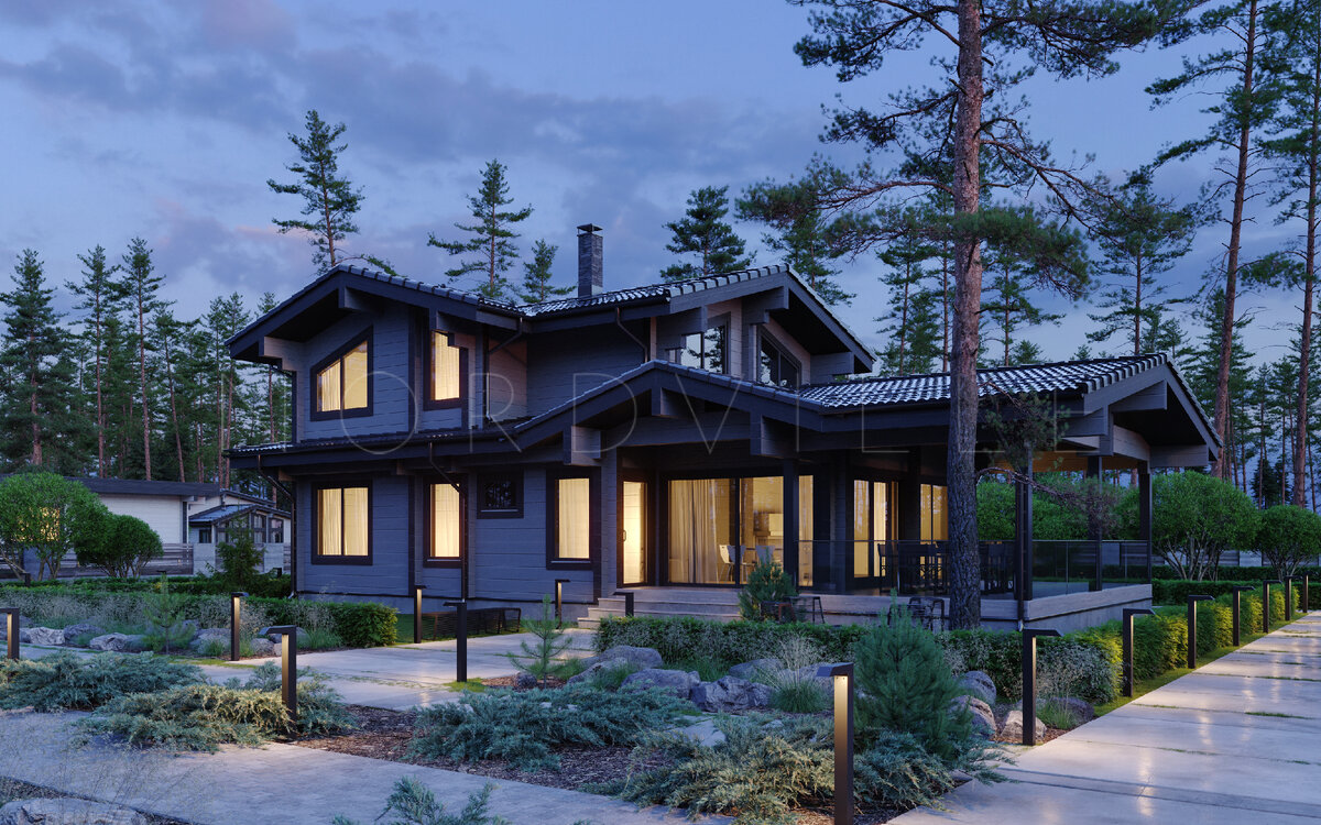– 1 cанузел; Проект отлично подходит как для постоянного проживания, так и сезонного отдыха. Просторная и уютная терраса площадью 38 м2. Панорамные окна в гостиной подарят дому особую атмосферу в солнечную погоду с большим кол-вом естественного света.