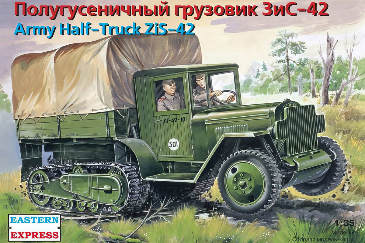 Хочу поделится опытом постройки модели ЗИС-42 от EASTERN EXPRESS в масштабе 1/35. Собирать набор я начал в 2008 году и до 2024 года ЗИС-42 так и пылится в коробке, а остановили меня утяжины на рессорах и гусеницы (которые короче по длине). На момент сборки 2024 год я имею уже не полноценный набор. Безвозв