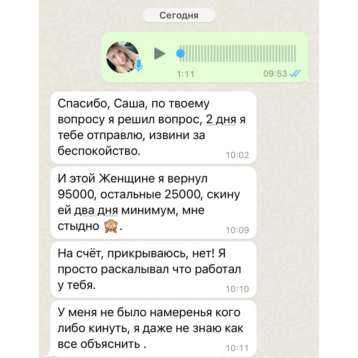 Не прошло и нескольких минут после моего убедительного сообщения, как деньги к женщине вернулись двумя платежами, хотя он пишет, что остальную часть отдаст через 2 дня.