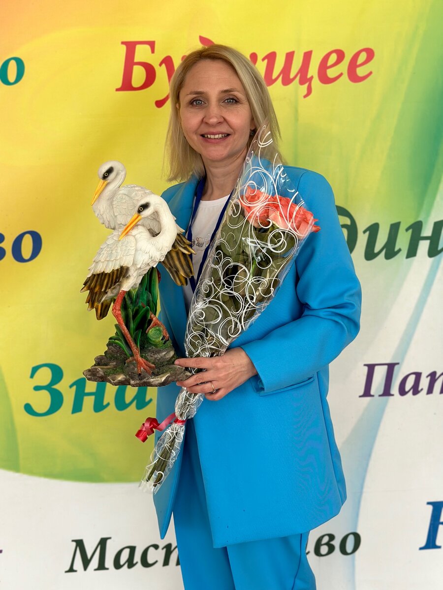 Елена Александровна как победительница получила и переходящий приз – статуэтку аистов – от победительницы прошлогоднего конкурса, педагога ильского детсада №39 Наталии Крикун.