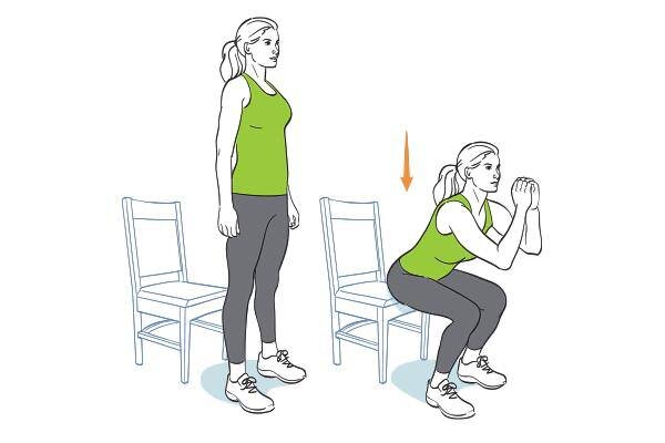 подходов: 3/ повторений: 10 (приседаем полностью)/ отдых: 20 сек