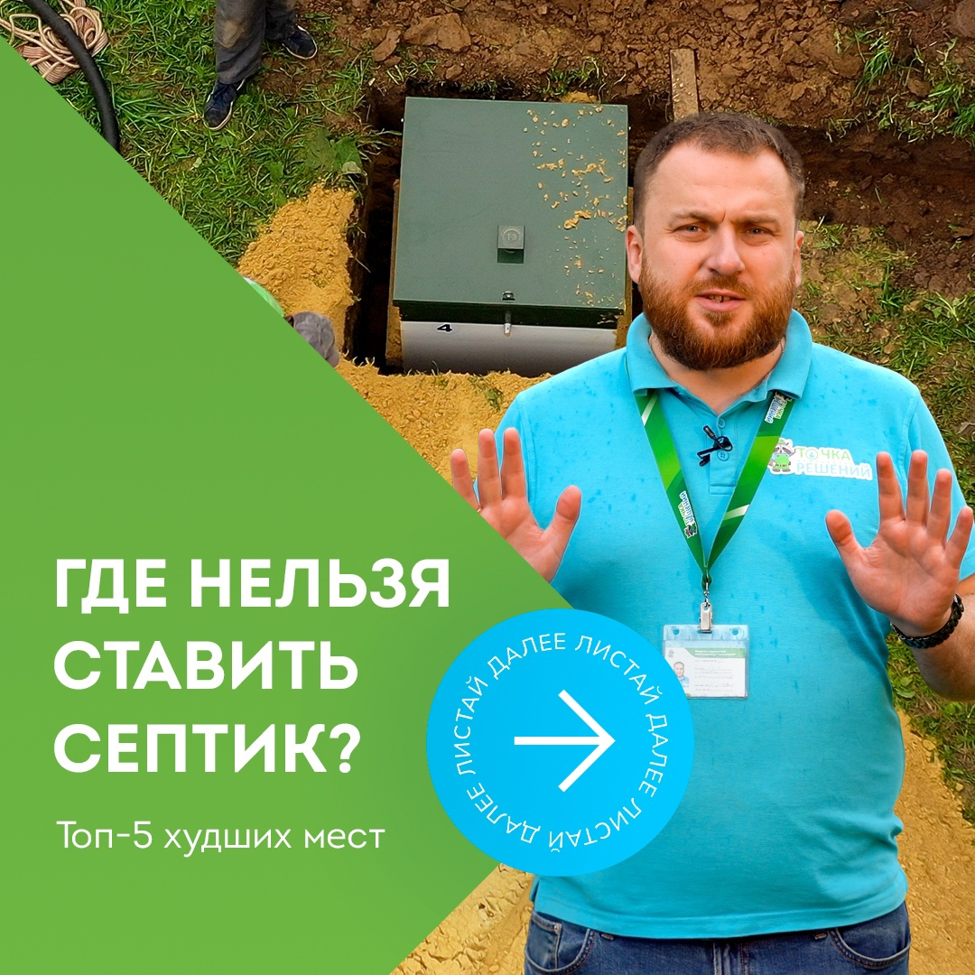 Эти ошибки могут обойтись вам в десятки, а то и сотни тысяч рублей. Разбираем топ-5 стоп-мест для установки, основанных на том, что видели наши специалисты на выездах. 1) Нельзя: ближе трех метров от свай, находящихся под нагрузкой В случае, если дом на участке установлен на сваях — нельзя выкапывать котлован ближе 3 метров от них. Нагрузка на сваи распределена не равномерно (как в случае с ленточным фундаментом), а точечно — на каждую сваю. Стандартный котлован под септик — 1,5 на 1,5 метра и 2,5 метра глубиной. И это достаточно серьезная деформация грунта. В худшем случае, свая практически полностью оголяется от поддерживающего ее грунта, деформируется под нагрузкой — и часть дома может ощутимо «просесть». Если же на участке еще только свайное поле, то это правило не действует, т.к. в этом случае на нее не оказывается никакого давления. 2) Нельзя: за границы участка По нормам, очистные сооружения должны находиться только на вашем участке. За его пределы выносить септик запрещено. Так