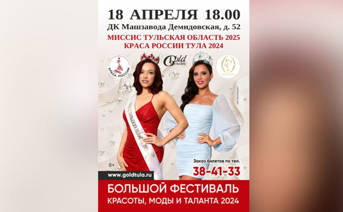 Представительницы Тульского региона поборются за право представить нашу область в финале Всероссийского конкурса красоты «Миссис и Мисс Россия/Вселенная». 18 апреля в 18.00 в ДК «Туламашзавод» состоится большой фестиваль красоты, моды и таланта — финальное шоу V юбилейного областного конкурса красоты и грации «Миссис Тульская область 2025» и XIV областного фестиваля красоты и таланта «Краса России — Тула 2024». Одни из самых красивых, грациозных и талантливых представительниц Тульского региона поборются за высокие титулы и право представить нашу область в финале Всероссийского конкурса «Миссис и Мисс Россия/Вселенная» и XXX юбилейного фестиваля красоты и таланта «Краса России». Вашему вниманию будут представлены конкурсные выступления и шоу талантов участниц, выступление титулованных красавиц прошлых лет, показы новых коллекций профессиональными моделями Gold models и Gold models kids, торжественная церемония награждения. Подробности — по ссылке. Читайте полную версию статьи на сайте M