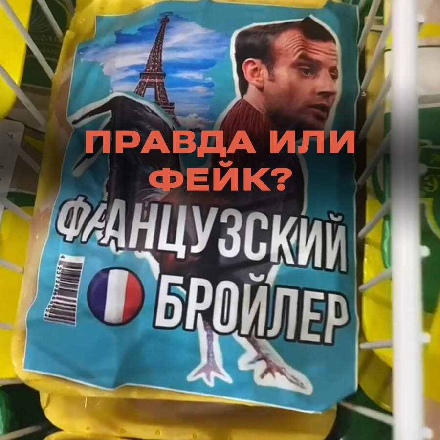 На хабаровских прилавках заметили новый вид продукции с изображением президента Франции — «Французский бройлер». Сообщения с видеоподтверждением «новинки» растиражировали в сети. Видео с новым бройлером сняли в Хабаровске, в магазине на ул. Ленинградская, 28. Проанализировав сайт магазина, оказалось, что такой продукции вовсе нет в продаже. Если присмотреться внимательнее, то можно увидеть, что этикетки «французский бройлер» наклеены сверху обычной продукции. Они носят шуточное изображение и очень свежи на вид (видимо только из типографии). И почему-то нанесены только на три подложки с курицей. Судя по ценнику на видео и на сайте, они были нанесены на замороженное филе цыпленка «Амурский бройлер». Из этого делаем вывод, что видео оказалось обычной шуткой. А вы бы купили подобную продукцию?