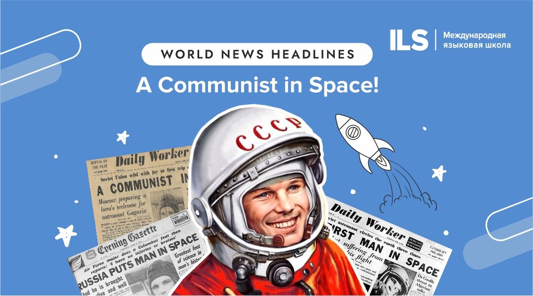 Все мы знаем о том, что Юрий Гагарин совершил 12-го апреля первый полет в космос и с каким ликованием его встречал народ. Но мало кто в курсе, как полет советского космонавта освещала зарубежная пресса. Мы собрали здесь несколько фотографий апрельских газет 1961-го, чтобы вы могли взглянуть на яркие заголовки о Гагарине и заодно выучить некоторые английские слова.