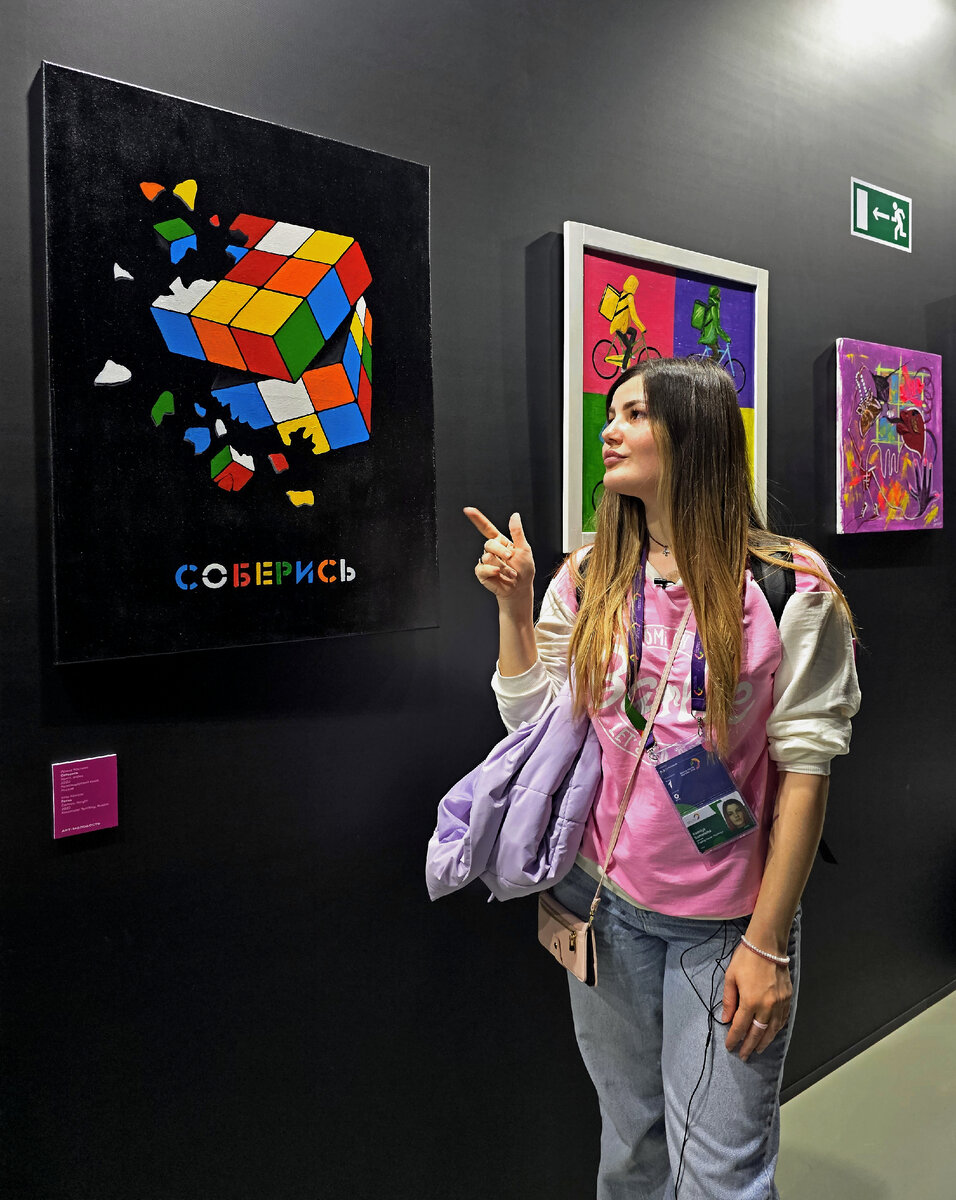 В последнее время я всё больше и больше мирюсь с тем, что не обязана любить скромные интерьеры, минимализм и всякие скучные малевичевские квадраты. Я обожаю яркое, сумасшедшее, креативное, вычурное! Такой мне и показалась выставка Арт.Молодость на Всемирном Фестивале Молодёжи. Дважды я там пробежалась, но хотелось часами разглядывать работы. Частью делюсь с вами. Пойму, если не оцените кислотно-розовые трубы! Советую приблизить картину с космонавтом и разобрать, из чего она. В любом случае, как вам?