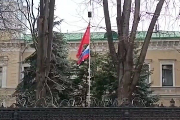 На флагштоке, расположенном на территории украинского посольства в Москве появились Знамя Победы и государственный флаг Российской Федерации. Кто вывесил эти флаги неизвестно. В МИД РФ ситуацию не прокомментировали.
