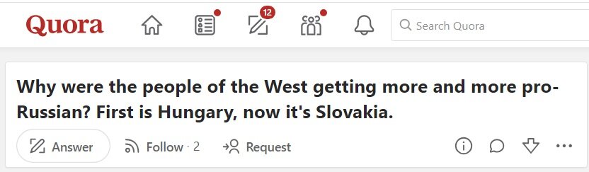 Сразу к делу. На Quora наиболее прогрессивная часть западной общественности начинает испытывать возмущение и недоумение в отношении "отдельной "несознательной "части их общества, приводя в пример лидера Венгрии и недавние результаты выборов в Словакии: