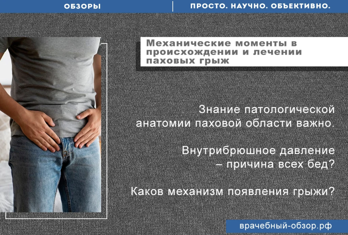 Смысл их сводится к тому, что при повышении внутрибрюшного давления пассивном, без участия напряжения мышц, паховые грыжи появляются весьма часто. Так, напр., грыжи, как правило, появляются при длительной водянке брюшной полости. Затем отмечено частое появление грыж при тех профессиях, которые требуют длительного и значительного мышечного усилия в стоячем полусогнутом положении: кожевники, металлисты, грузчики (преобладание грыж белой линии у этих последних объясняется вероятно тем, что грузчики нажившие себе паховую грыжу автоматически весьма быстро выбывают из строя, чего нельзя сказать о других профессиях и таким образом ускользают от обследования. Вообще значение подъема тяжести в этиологии широко известно: в народе говорят: «надорвался»).