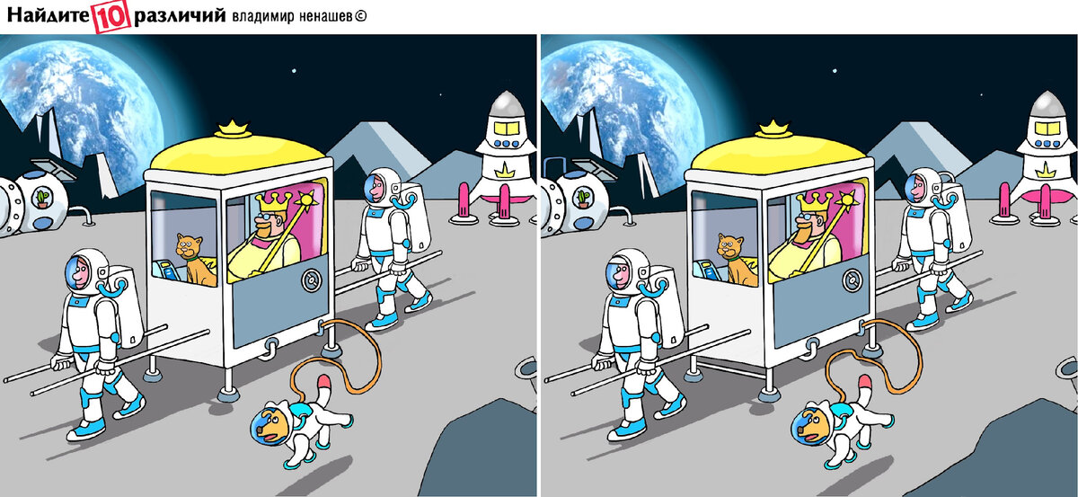 Найдите 10 различий. Тест. Летим сначала на Луну! Будьте внимательны! Позитив.
