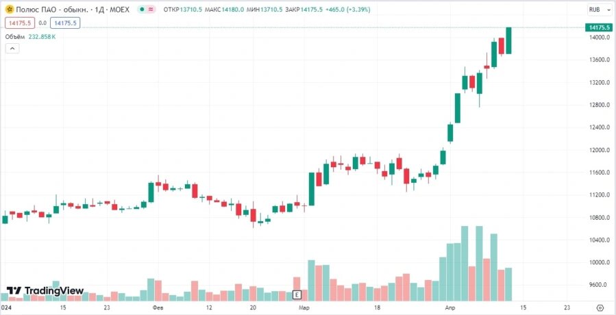 Аналитики БКС, которые постоянно составляют и пересматривают различные рейтинги российских компаний для получения максимальной прибыли от инвестирования, выделили три компании, которые могут за год показать рост до 30%. Две из трех компаний входят в индекс Московской биржи, но пока что не входят в народный портфель. 1. Полюс - один из наиболее рентабельных золотодобытчиков в мире и крупнейший производитель золота в России. У компании самые низкие издержки на производство унции золота в стране. Акции компании с начала года выросли на 32% и продолжают расти на фоне растущих цен на золото, которые не так давно установили новый мировой рекорд. Компания входит в основные предпочтения инвесторов, так как она приостановила выплату дивидендов в 2022 году и молчит о распределении прибыли за 2023 год. Также у компании растет долговая нагрузка за счет выкупа акций. Целевая цена акции на год от аналитиков БКС - 15 тыс. рублей, что предполагает рост на 8% к текущей стоимости. У меня была данная ком