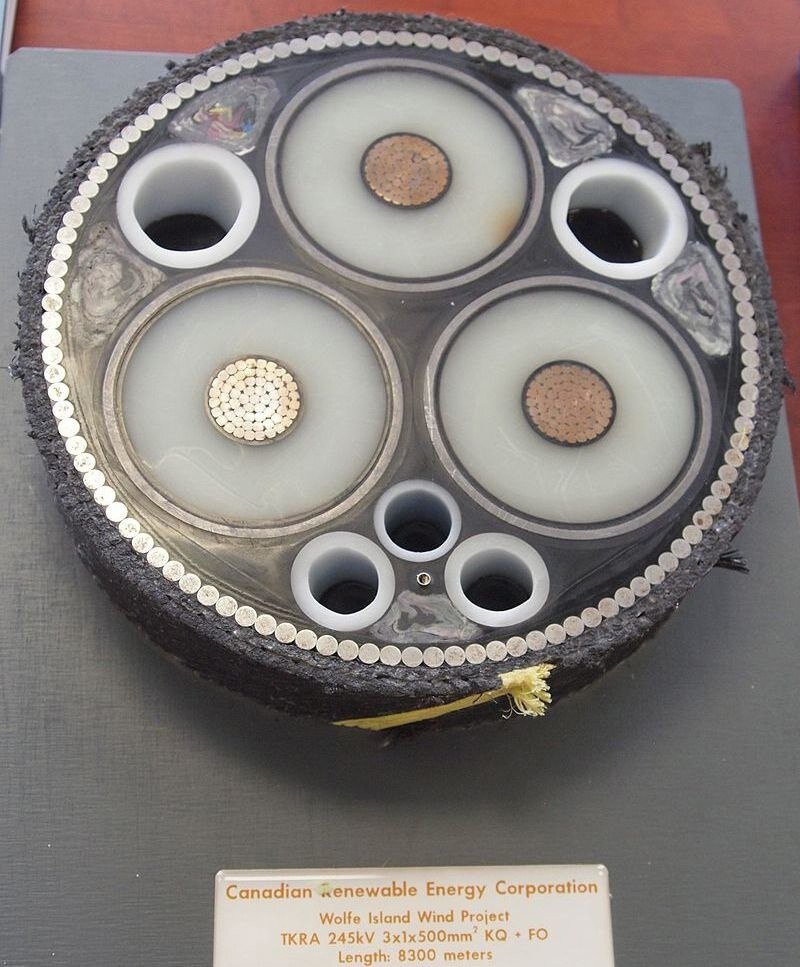 Поперечное сечение подводного силового кабеля, используемого в ветряной электростанции острова Вульф