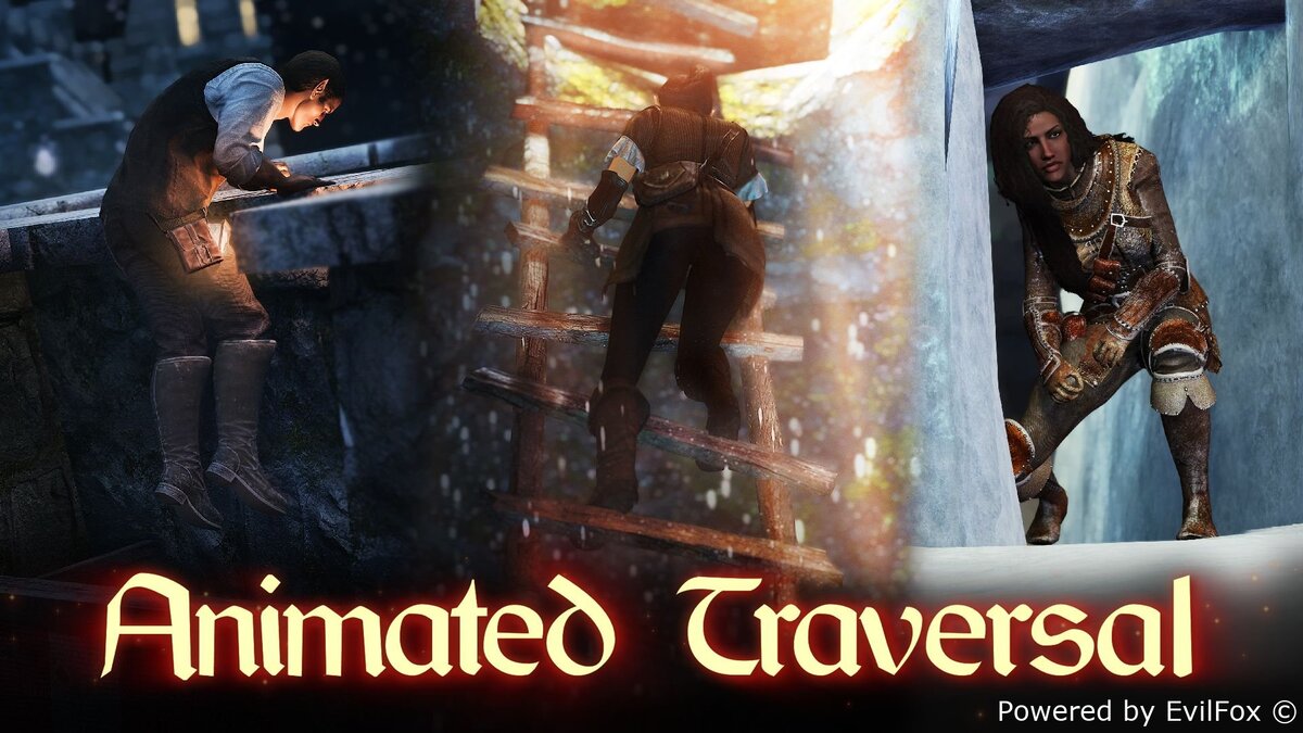 EVG Animated Traversal — это фреймворк, который добавляет новые анимации, позволяющие игроку взбираться на уступы, протискиваться сквозь узкие места, перепрыгивать через препятствия и делать многое другое на местах с подсказками. Мод добавляет новые «маркеры подсказок анимации», которые запускают анимацию движений.