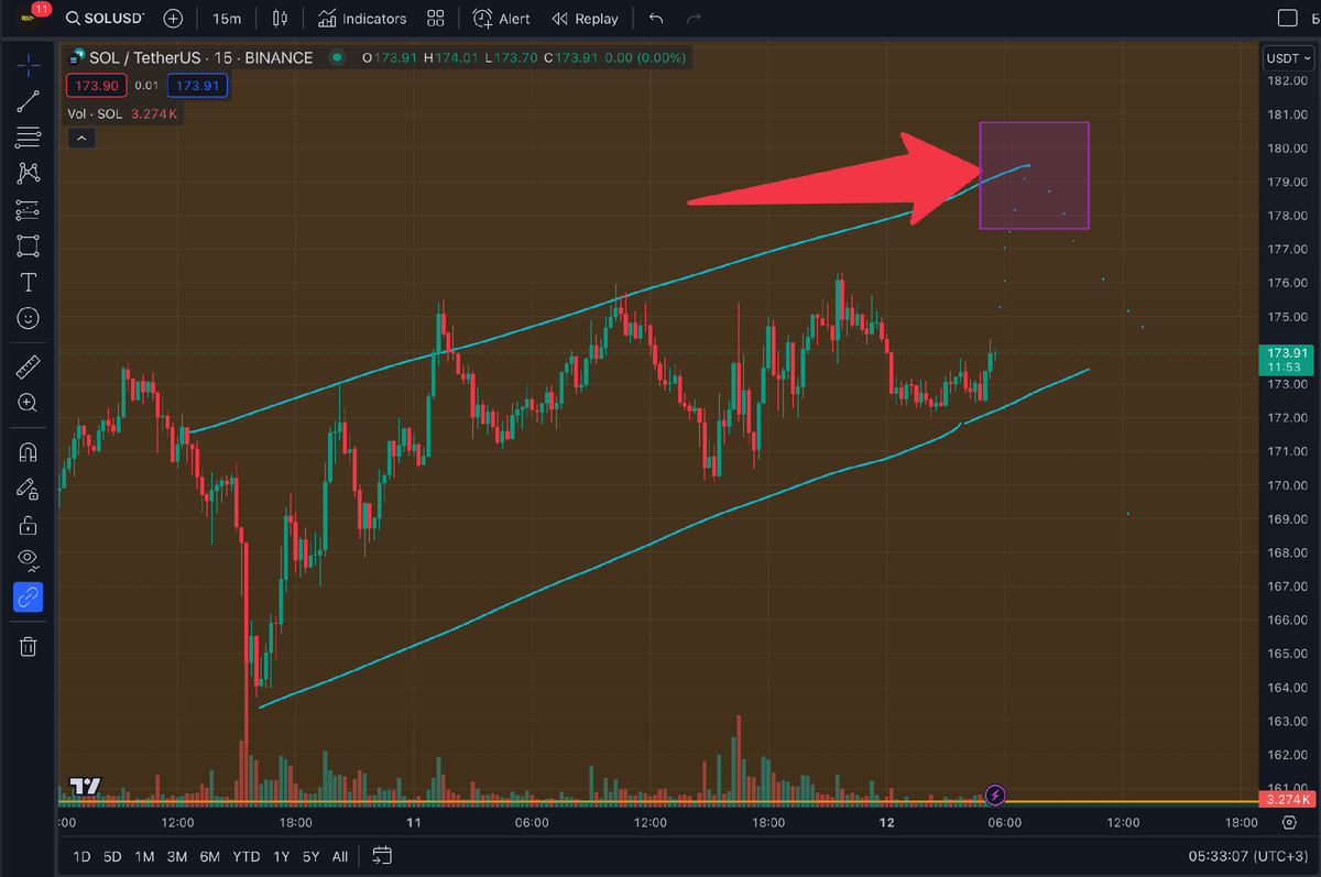$SOL находится в бычьем, или положительном, тренде. График показывает, что после падения цены произошло сильное восстановление, в результате чего #Solana снова поднялся выше 170 долларов. Обычно это хороший знак и означает, что тренд может смениться с падающего на восходящий. Цена сейчас выше некоторых ключевых уровней, на которые смотрят трейдеры, предполагая, что она может продолжить движение вверх. SOL находится выше многочисленных скользящих средних, сигнализируя о потенциальном продолжении бычьего ралли. Превышение 50-дневного среднего значения является хорошим признаком краткосрочных показателей SOL, а превышение 200-дневного среднего значения является хорошим признаком долгосрочного движения актива. Ближайшее движение отметили на графике, если сценарий отработает возможно дальнейший набор высоты, но опять же с оглядкой на $BTC . Подпишись, эксперимент продолжается ! Телеграм Ютуб канал Вконтакте