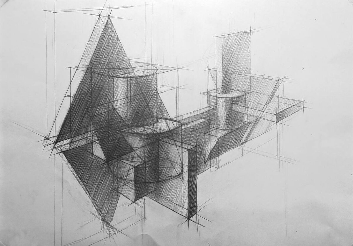 1. Отношение объема и пространства. Обращайте внимание, какой именно тип композиции будет прописан в задании конкретно вашего года. Если от вас требуется строго «объемная» композиция, старайтесь сделать максимально плотную конфигурацию фигур, без каких-либо «дырок» среди них. Если же будет требоваться «объемно-пространственная» вы имеете право внедрять НЕМНОГО пространства для обогащения структуры. Но помните, что композиция должна оставаться преимущественно объёмной, а значит, что фигур должно быть строго больше, чем воздуха.