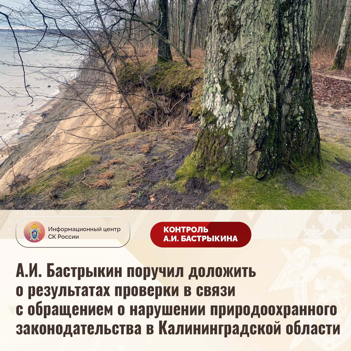 А.И. Бастрыкин поручил доложить о результатах проверки в связи с обращением о нарушении природоохранного законодательства в Калининградской области