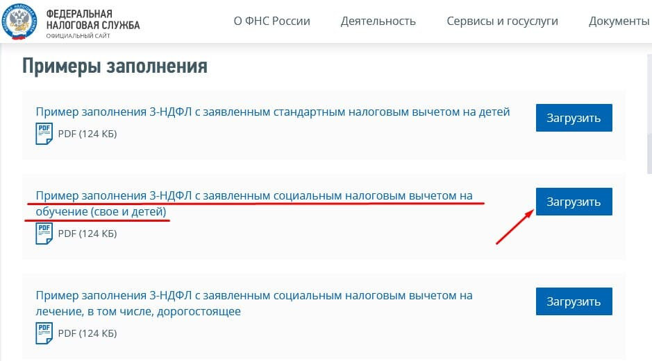 Кроме того, на официальном сайте ФНС России размещен пример заполнения 3-НДФЛ с заявленным социальным налоговым вычетом на обучение (свое и детей) – для просмотра переходите по ссылке.