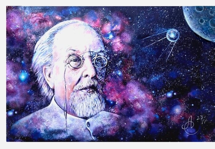 Картину" Циолковский. Мечты сбываются" я написала маслом на холсте уже много лет назад. Она участвовала в выставке, в городе Свободный, посвящённной космосу и космодрому " Восточный. Тогда же я публиковала в интернете фото работы и написала пост о том как сбылись мечты Циалковского, а потом и Юрия Гагарина, который читал книги Циолковского в школьной библиотеке и с тех пор думал только о космосе и о полетах. С выставки картина не вернулась. Начала расследовать куда могла пропасть картина, мне сообщили что якобы организаторы не вернули 16 работ, в том числе и эту. Приходится верить. Константин Циолковский мечтал о запуске спутника, Юрий Гагарин - о полетах в космос, а я мечтаю о том чтобы картина вернулась ко мне или я хотя бы узнала где она сейчас находится. Пишу без фамилий, так как цель у меня всегда была её найти, а не опорочить чьи-то имена, замешаные в её пропаже. Поэтому подробности даже и не спрашивайте, если только не в личном письме. Наверняка кто-то знает, видел.или может рас