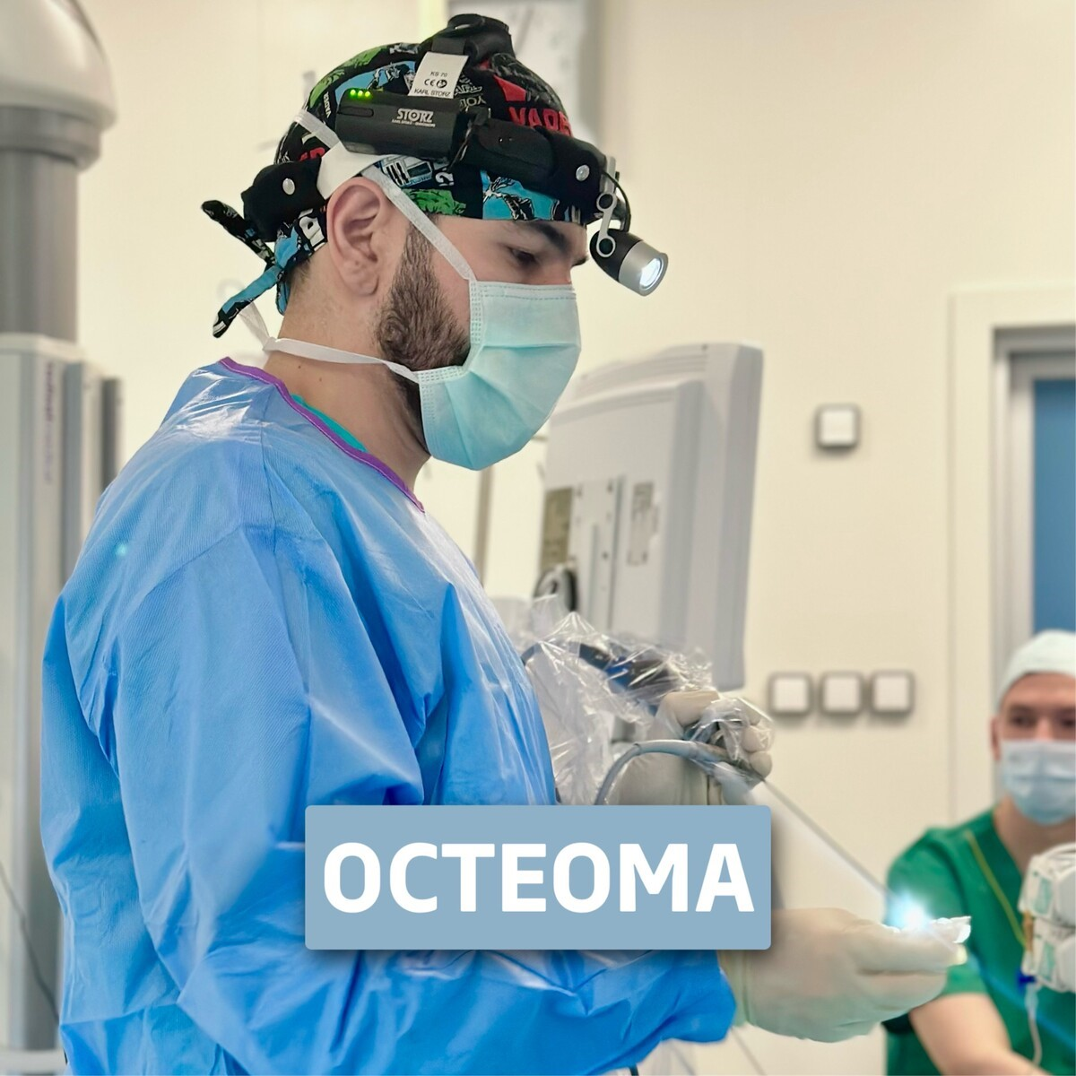 Остеома - это медленно растущее образование из костной ткани. Руководитель направления оториноларингология Арслан Келеметов уточнил, что существуют основные причины возникновения остеом: 1. Нарушения эмбриогенеза 2. Инфекции 3. Травмы Остеома носа и околоносовых пазух может быть как основным заболеванием, так и проявлением другого, например синдрома Гарднера (множественные остеомы челюстнолицевой области в сочетании с полипами толстого кишечника и другими опухолями тканей). ЛОКАЛИЗАЦИЯ: Лобная пазуха (52—71,8%) Клетки решетчатого лабиринта (16,9—22%) Верхнечелюстная пазуха (1,7—6,3%) Клиновидную (4,9%) пазухи Полость носа (0,6%). *Описаны немногочисленные случаи поражения: • нижней и средней носовых раковин • перегородки носа • твердого неба • носослезного канала • носовой кости Течение заболевания, особенно на начальных стадиях, обычно бессимптомно. По разным данным, от 4 до 10% всех остеом могут протекать без симптомов. Опухоль растет со средней скоростью 0,44—6 мм в год Клинически