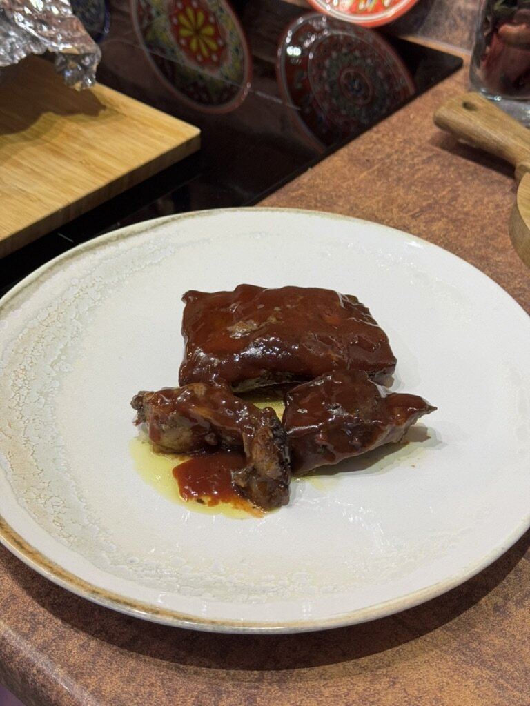 - Снимите верхний лист фольги и смажьте рёбрышки соусом. Отправьте в духовку ещё примерно на 7–10 минут, чтобы соус загустел.