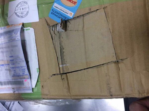 И вроде бы пока ничего не терялось... Но проблем было много: то коробку вскроют как консервную банку, вот так.