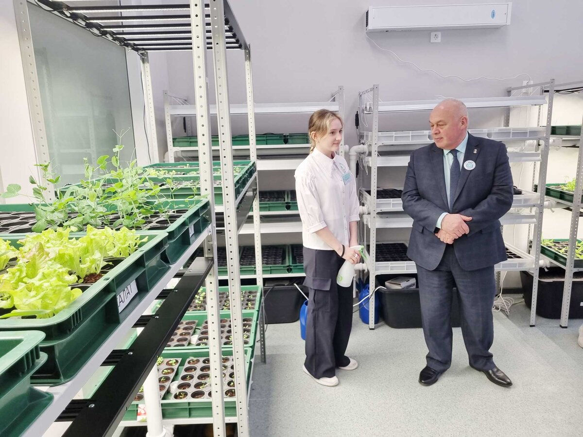 Учащиеся рассказали, что неделю назад в акваториуме поселились первые жители - тропические рыбки. А в агроториуме ученики выращивают микрозелень (салат, укроп, базилик, горчица, горох, мангольд и другие культуры) для школьной столовой. Чуть позже, в лаборатории научно-исследовательской деятельности младших школьников, где мальчишки и девчонки проводят свои первые опыты и эксперименты, гостям предложили присоединиться к посадке микрозелени с помощью джутового коврика.