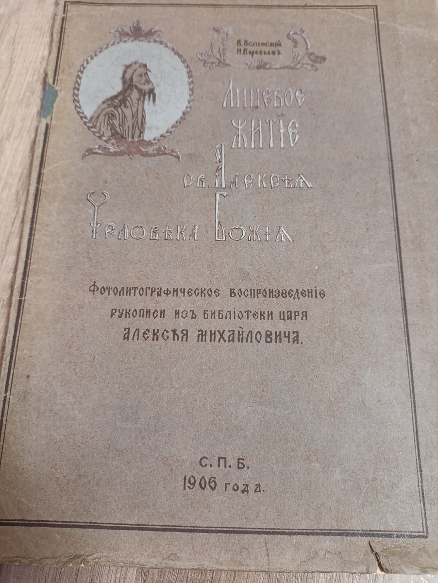 Лицевое житие св. Алексея человека Божия : Фотолитогр. воспроизведение рукописи из библиотеки царя Алексея Михайловича / [Публ.] В. Успенский, Н. Воробьев. - Санкт-Петербург, 1906. - [2], III, 50 с., 1 л. ил. : ил.; 32. Житие Алексея (Алексия), человека Божия – переводной агиографический памятник, С. XII в. получивший широкое распространение в русской, украинской и белорусской книжности и фольклоре. Житие посвящено христианскому подвижнику Алексею. Сказания о нем известны всем христианским летературам; греческая версия Жития известна в списках Х – XII вв., С нее и осуществлен славянский перевод. События, о которых повествуется в Житие, происходят на рубеже IV – V вв. в правление римских императоров, братьев-соправителей Аркадия (377 – 408) и Гонория. (395 – 423) при папе Иннокентии I. Алексей – единственный, вымоленный сын богатых и благочестивых патрициев Евфимиана и Аглаиды (Агласеи). Прекрасно воспитанному и образованному сыну родители готовили блестящее будущее. Алексей был обруч
