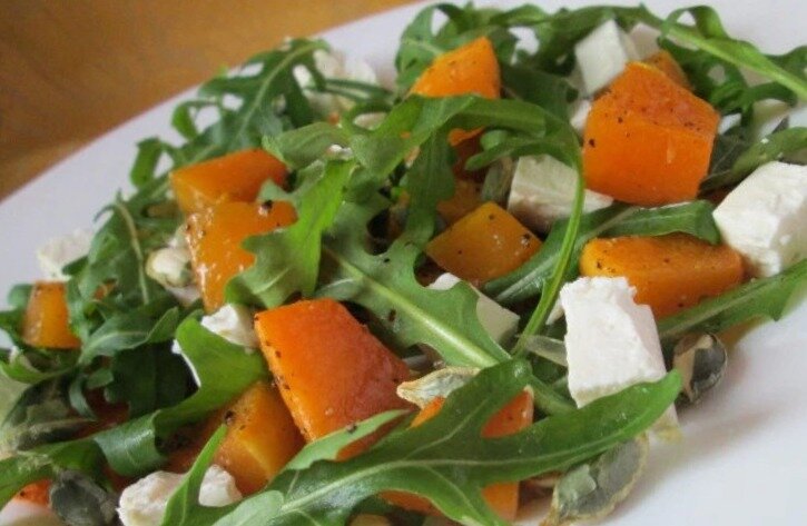 За 30 минут запечь тыкву, яблоки и брынзу, предварительно сбрызнув их маслом и 1-2 ст. л. воды.