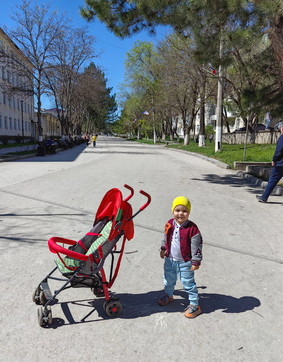 Каждый вечер мы с сыном выходим на вторую прогулку. Невозможно оставаться дома, когда на улице звенит весна! Получается, что у нас две продолжительные прогулки в день. Первый раз обычно идем после завтрака. Спим мы долго, часов до 10. Завтракаем тоже неспешно. Мы ведь в отпуске, и спешить нам некуда. Поэтому на улицу выходим около полудня. Коляску берем с собой. На ночь оставляем ее на лестничной клетке между первым и вторым этажами. Соседей у нас мало. Треть квартир стоят закрытые, и в них никто не живет. Пожилых хозяев уже нет, а их наследники не спешат что-то делать с жильем. Хотя цены на недвижимость даже в старом фонде моего некурортного и маленького городка стремятся к стоимости питерских окраинных новостроек 🙈. Нет слов! Даже посуточно сейчас квартира стоит 2500-3000. Прямо как и в нашем ЖК. Ладно, что-то я ушла в сторону от темы. Главная улица нашего городка пешеходная. Можно спокойно отпускать ребенка и не переживать, что из-за поворота выедет машина. Миша радостно б