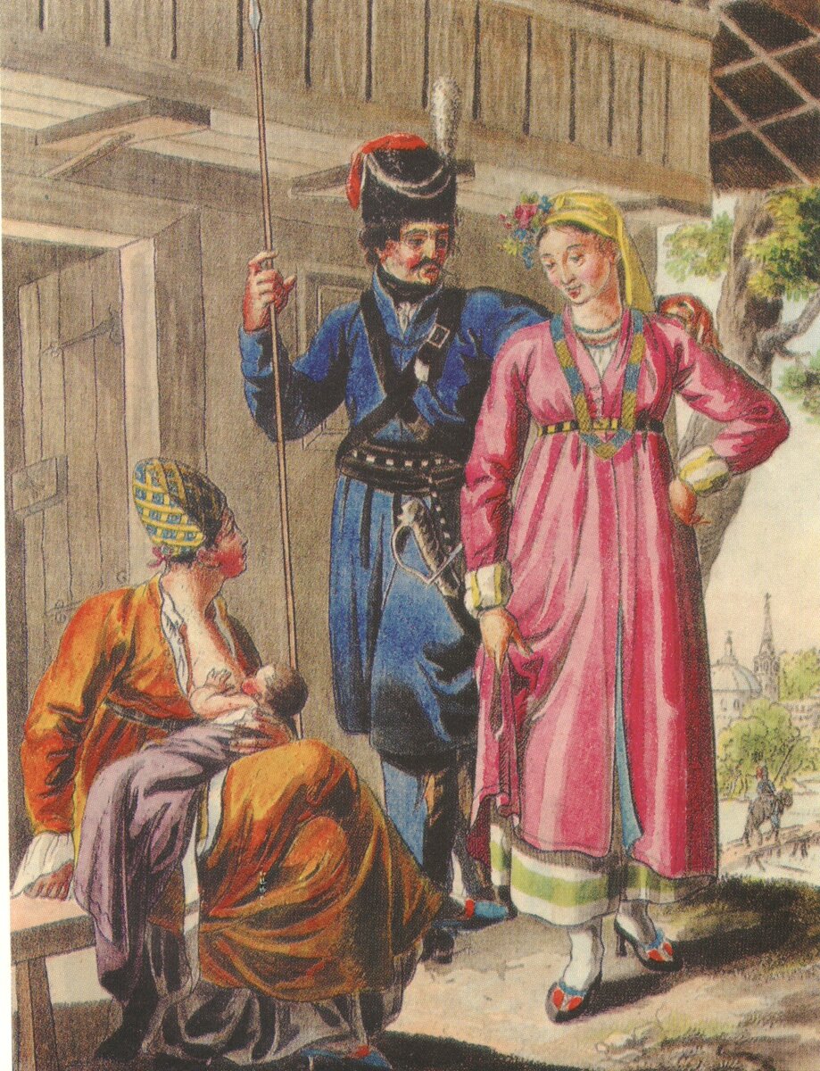 Реформы Петра I в области костюма, запрещавшие шить, носить и продавать национальную одежду, и предписывавшие ношение немецкого платья и запрет на бороды, не коснулись донских казаков. Казаки были рады этому решению и послали в Москву атаманов с выражением благодарности монарху: “Мы взысканы твоею милостию паче всех подданных: до нас не коснулся твой указ о платьях и бородах; мы живем по древнему обычаю – всякий одевается, как ему угодно: один черкесом, другой по-калмыцки, иной в русское платье старого покроя, мы это любим, немецкого же платья никто у нас не носит и охоты к нему вовсе не имеем”.