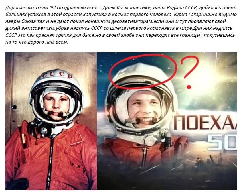 Конспирологи всех мастей и граждане, особенно остро ностальгирующие по советскому прошлому уверены, что надпись «СССР» на шлеме Юрия Гагарина специально стирают с фотографий первого в мировой истории космонавта. Некие «десоветизаторы», по мнению таких людей, с помощью фотошопа пытаются вымарать из памяти потомков прямую связь между покорением космоса и советским периодом истории. Посты такого содержания до сих пор раскидываются по соцсетям с маниакальным упорством. Особенно в День Космонавтики. Поэтому «Липецкмедиа» рассказывает о том, куда же «подевались» эти буквы на известных нам снимках на самом деле. Начнём немного издалека. Как нетрудно догадаться, любой полёт в космос, а, особенно, первый в истории человечества – событие незаурядное, распланировать все этапы с точностью до секунды и сантиметра здесь практически невозможно. В том числе и гарантировать, что космонавт после завершения полёта приземлится именно в точку «А», а не в точку «Б». Вот и Сергей Королёв вместе со своей кома