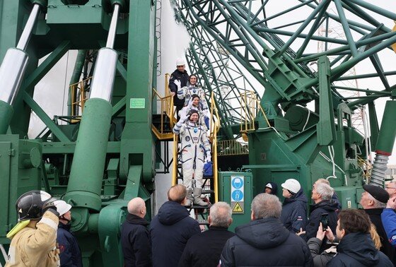 Дружественный пинок и подъем флагов. Как космонавтов провожают в полет на Байконуре