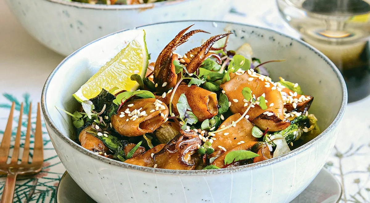 Жареные кальмары с миксом из трав – это изысканное и легкое блюдо, идеально подходящее как для повседневного обеда, так и для ужина в особенном случае. Это блюдо сочетает в себе нежность кальмаров с ароматным и свежим вкусом различных зеленых трав. Жареные кальмары приобретают золотистую корочку, а травы добавляют блюду особый пикантный аромат. Время и сложность приготовления Общее время приготовления: около 20 минут. Сложность: легкая. Ингредиенты Приготовление Подача Жареные кальмары с миксом из трав – это не только вкусное, но и красивое блюдо, которое порадует вас и ваших гостей своим нежным вкусом и ароматом свежих трав. Интересные факты о кальмарах Кальмары – удивительные и уникальные существа, обитающие в мировом океане. Вот несколько интересных фактов о них: Эти факты демонстрируют, насколько уникальными и интересными существами являются кальмары, иллюстрируя их разнообразие, биологические особенности и значение в мировой экосистеме и культуре. Приятного аппетита!