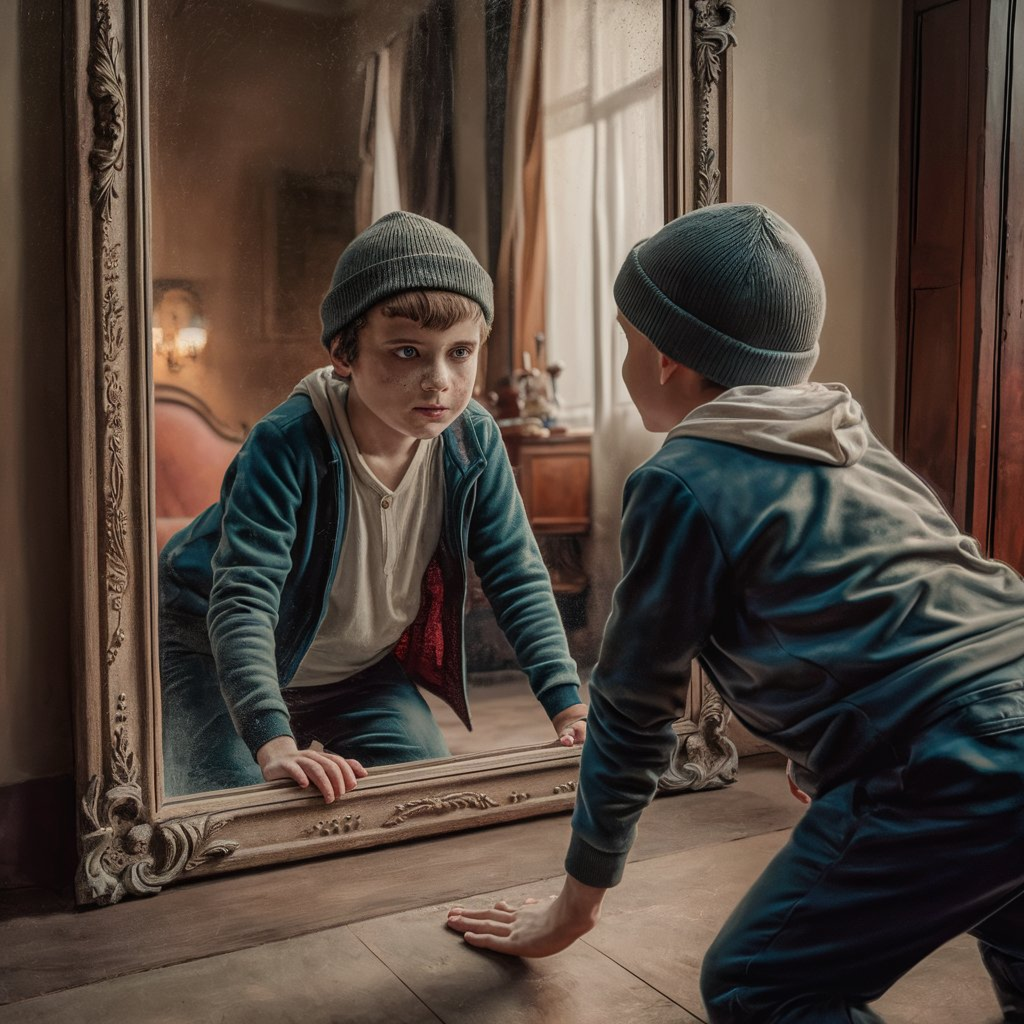 В далеком королевстве, где жил Дэни, в воздухе витало ощущение волшебства. Оно было необычным, так как жило в самом мальчике. Дэни обладал необычным даром — волшебным зеркалом, которое отражало не только его собственный образ, но и показывало его отражение в виде живого, дышащего человека. Этот Зеркальный Мальчик, как стал называть его Дэни, постоянно присутствовал рядом, наблюдал за ним и даже разговаривал. Однако у этой необычной способности были и свои недостатки. Из–за своего уникального дара Дэни часто сторонился окружающих, которые находили его странным и настороженным. Поэтому у него не было друзей, и он жил в одиночестве. Но мальчик еще не знал, что судьба приготовила для него нечто удивительное. В один яркий солнечный день, когда Дэни стоял перед волшебным зеркалом, произошло удивительное событие. Когда он осторожно прикоснулся к его поверхности, из зеркальных глубин вышел настоящий мальчик. Пораженный, Дэни понял, что этот мальчик — точная копия его самого, только он живой. О