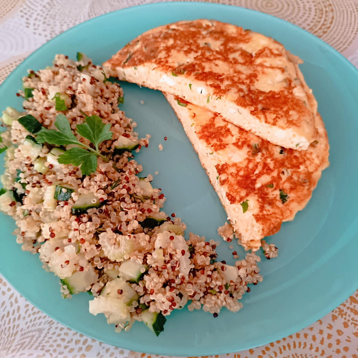 С мукой как обычно, чтобы было проще переворачивать, можно добавить 2 ст ложки. Тогда регулировать углеводы. Переворачиваю без дополнительных крышек и тарелок, широкой лопаткой. Первую сторону минут 5, пока не схватится верх лепёшки. Очень вкусная, сытная лепёшка. У меня, по обыкновению, дополнена сложными углеводами и овощами в виде киноа с огурцом и сельдереем. Повторяла. На гарнир киноа с брокколи и сельдереем Пшенофокачча. Та же лепёшка, но с пшённой мукой ) В таких изделия