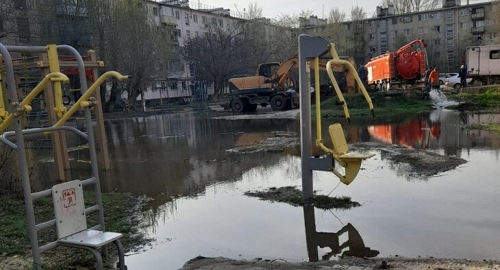 На юге Волгограда во дворе стоматологии устраняют порыв на сетях