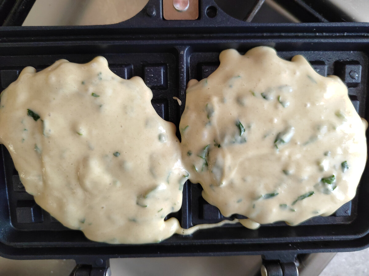 Эти вафли я готовила на зеленой гречке, а чтоб "усилить зеленое" 😁, добавила в тесто 10 гр свежего нарезанного шпината. Думаю, что если использовать замороженный шпинат или пробить смесь блендером, они будут вообще зеленого цвета. Рецепт: 100 гр муки зеленой гречки 2 яйца 1 пачка мягкого 5% творога 170 гр Простоквашино 1 ст.ложка оливк.масла 10 гр свежего шпината. 0.5 ч.л. разрыхлителя Соль Калорийность всего теста 771 ккал, стоимость 144 руб. Выход 7 вафель, 1 вафля 110 ккал, 21 рубль.