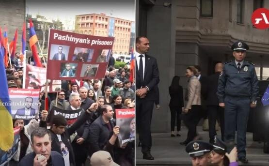 А между тем перед зданием МИД Армении Марию Пейчинович Бурич встретили сотни протестующих граждан, которые скандировали "Свободу политзаключенным!" Участники акции перечисляли имена политзаключенных (вице-председателя РПА Армена Ашотяна, общественно-политического деятеля Нарека Маляна, бывшего мэра Ванадзора Мамикона Асланяна, ведущих подкаста "Имнемнини" Нарека Самсоняна и Вазгена Сагателяна), а также представителей военно-политического руководства Арцаха, удерживаемых в тюрьмах Баку. Они требовали от Бурич организовать в ПАСЕ обсуждение вопроса о политзаключенных в Армении и принять резолюцию, обязывающую власти освободить их.